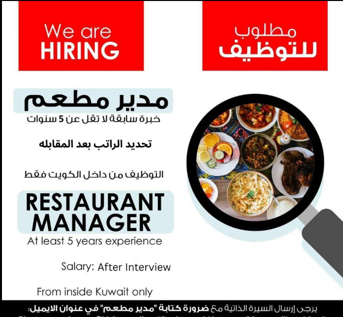 مطلوب فني ثلاجات لديه رخصة قيادة كويتية