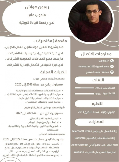 شاب خبرة في العمل الإداري وتخليص المعاملات