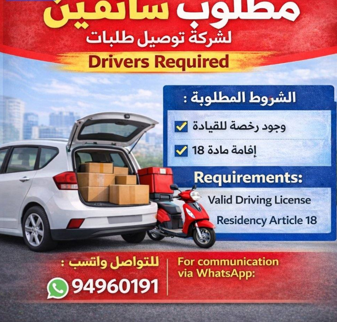 عندي ليسن خاص أبحث عن عمل كسائق أو مندوب.